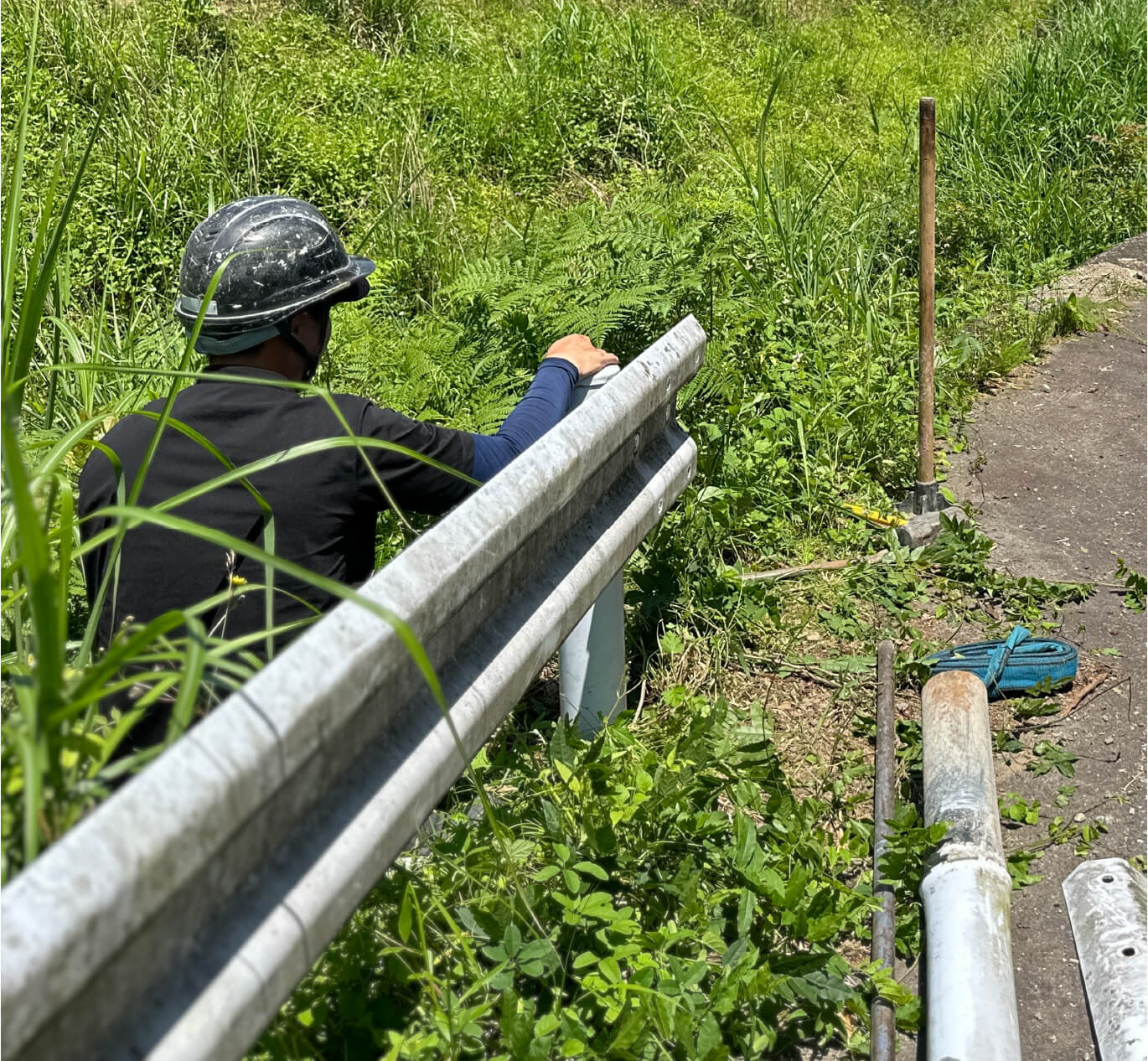壊れたフェンスやガードレール、街路灯などの修繕、民家のブロック塀の修繕など、公共工事から民間工事まで様々な修繕を行います。